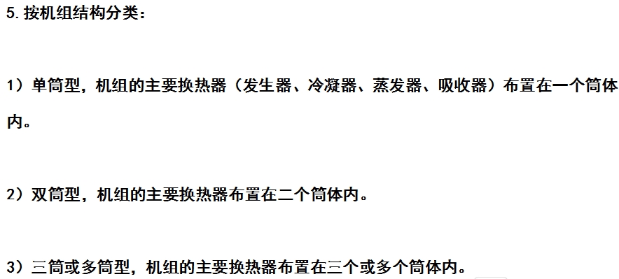 2.按驅(qū)動熱源分:1)蒸汽型;2)直燃型;3)熱水型。
